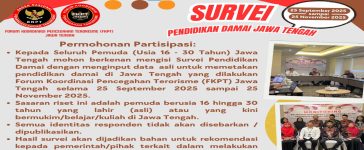 Semarang, Distingsi.com – Forum Koordinasi Pencegahan Terorisme (FKPT) Jawa Tengah menyelenggarakan Survei Pendidikan Damai Jawa Tengah yang berlangsung mulai 25...