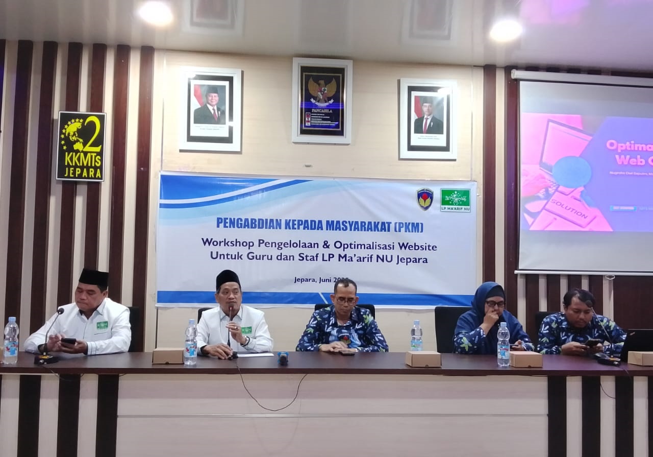 Jepara, DISTINGSI.com — Lembaga Pendidikan Ma’arif Nahdlatul Ulama (LP Ma’arif NU) PCNU Kabupaten Jepara menyelenggarakan Workshop Pengelolaan dan Optimalisasi Website yang ditujukan bagi guru dan staf dari berbagai madrasah di bawah naungannya. Kegiatan tersebut merupakan kemitraan antara LP. Ma'arif NU PCNU Jepara dengan Universitas PGRI Semarang melalui kegiatan Pengabdian kepada Masyarakat (PKM). Kegiatan ini berlangsung pada Senin, 9 Juni 2025,...