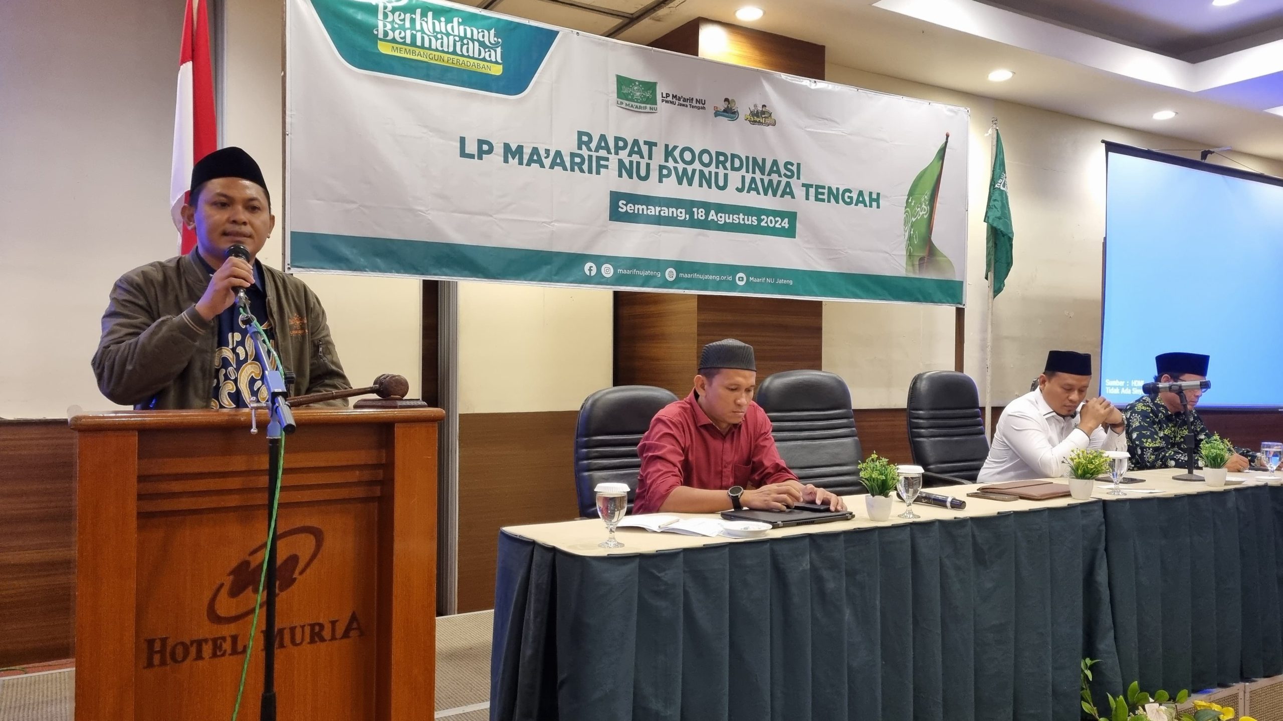 Semarang, DISTINGSI.com - Bertempat di Merak Room Hotal Muria Semarang, Lembaga Pendidikan Ma'arif NU PWNU Jawa Tengah periode 2024-2029 menggelar Rapat Koordinasi pada Ahad (18/8/2024). Dalam kesempatan itu, hadir Wakil Sekretaris PWNU Jawa Tengah Dr. Ghufron Hamzah, S.Th.I., M.S.I., Ketua LP. Ma'arif NU PWNU Jawa Tengah Fakhrudin Karmani, Sekretaris LP. Ma'arif NU PWNU Jawa Tengah Dr. M. Ahsanul Husna, Bendahara...